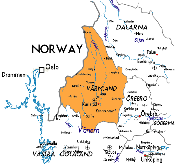 Map of VarmlandThis map of Varmland provides useful information about the cities, routes and major forms of relief. This information is essential in planning your trip, making hotel reservations or choosing the best alternative in transportation (train, personal car, car hire service). Depending on these issues, you can then estimate the costs of the trip and contact your travel insurance agency. You can print this map of Varmland and use it as a trusted companion during your journey. If you want to know more, please see the map of Varmland below.